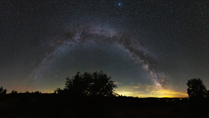 Panorama 24 champs de la Voie Lactée. Canon 5DIII refiltré Astrodon, objectif Tamron 24/70 réglé à 24mm traitement PTGui et Lightroom. Prise de vues et traitement : Jean-Baptiste Grillet