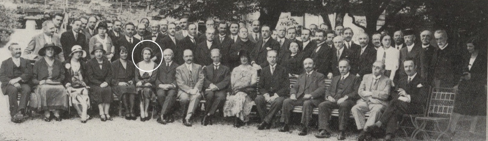 Edmée Chandon (indiquée par le circle blanc) en juillet 1931 lors de la réunion des astronomes français à l’Observatoire de Paris. Crédit : l’Astronomie