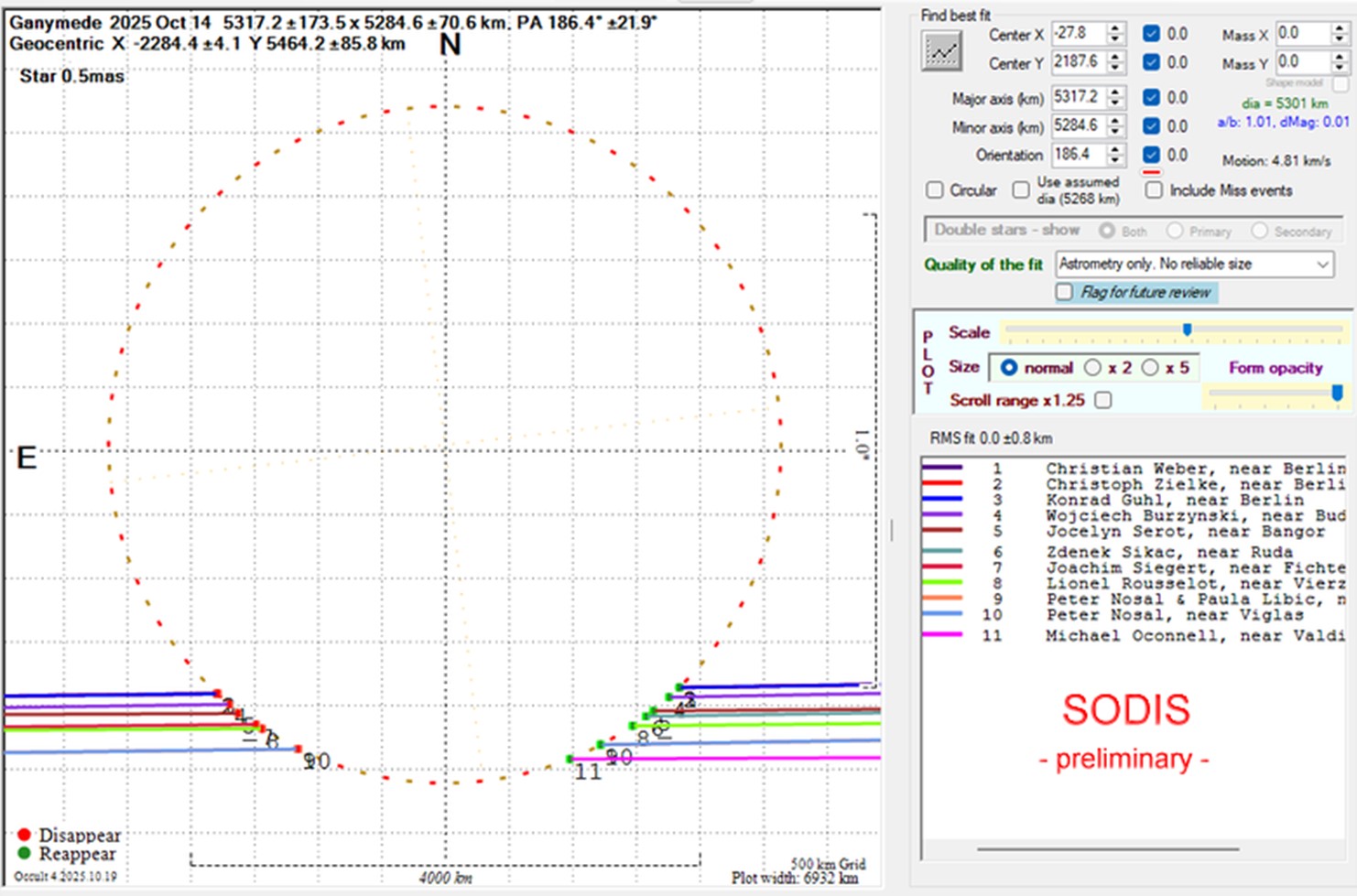 Avec 88 observateurs mobilisés en Europe la campagne d’observation de l’occultation par Ganymède d’une étoile de magnitude 7 du 14 octobre 2025 est un superbe succès !